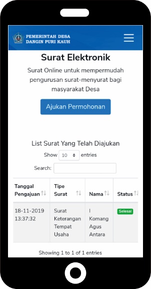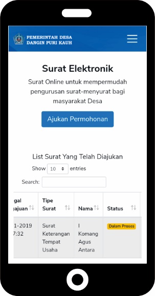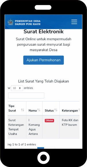 Demikianlah tahapan-tahapan yang harus dilakukan untuk melakukan pengajuan permohonan surat secara online, dengan melakukan pengajuan permohonan surat secara online akan menghemat waktu dari warga Desa Dangin Puri Kauh untuk mencari surat yang diinginkan.