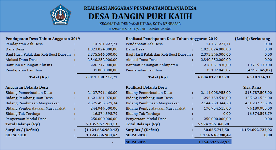 Dari sumber dana Silpa Pendapatan Desa sebesar Rp 34.052.326,89 dengan kegiatan: